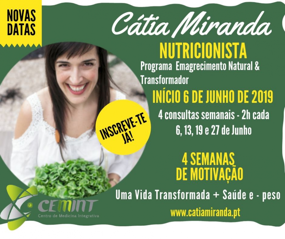 Se pretende um acompanhamento Nutricional especializado Lowcost, ao mais alto nível com a Nutriconista Cátia Miranda - 4 consultas presenciais + apoio motivacional + desafios e outras surpresas! Venha daí!